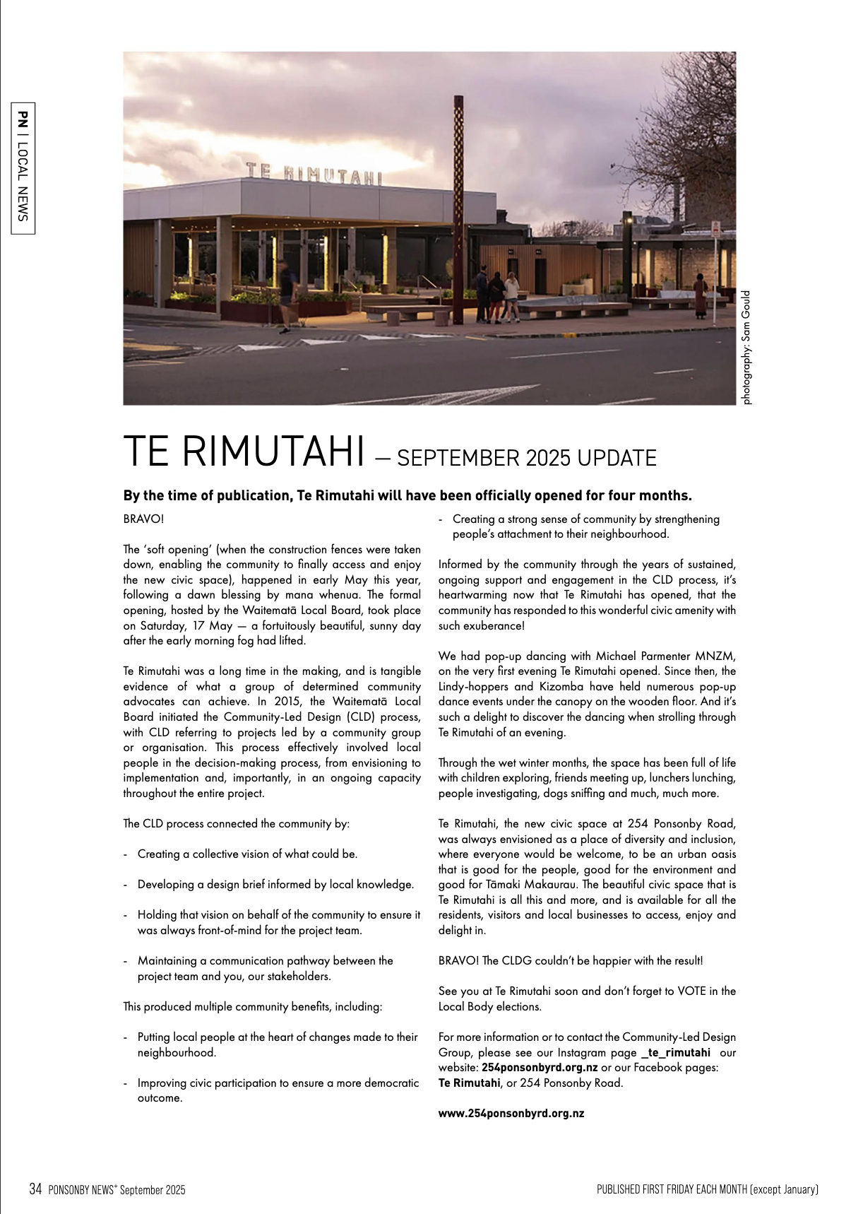 For more information or to contact the Community-Led Design Group, please see our Instagram page _te_rimutahi, our website: 254ponsonbyrd.org.nz, or our Facebook pages: Te Rimutahi, or 254 Ponsonby Road.