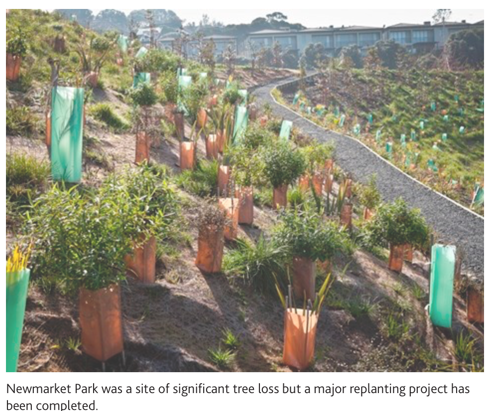 While the council was a significant player in the removal of trees in the ‘high protection’ categories at 86 percent, the absolute amount of clearance was 3.7ha or 6.4 percent of total canopy loss, more than half of it in the Newmarket Park re-development, now extensively replanted.