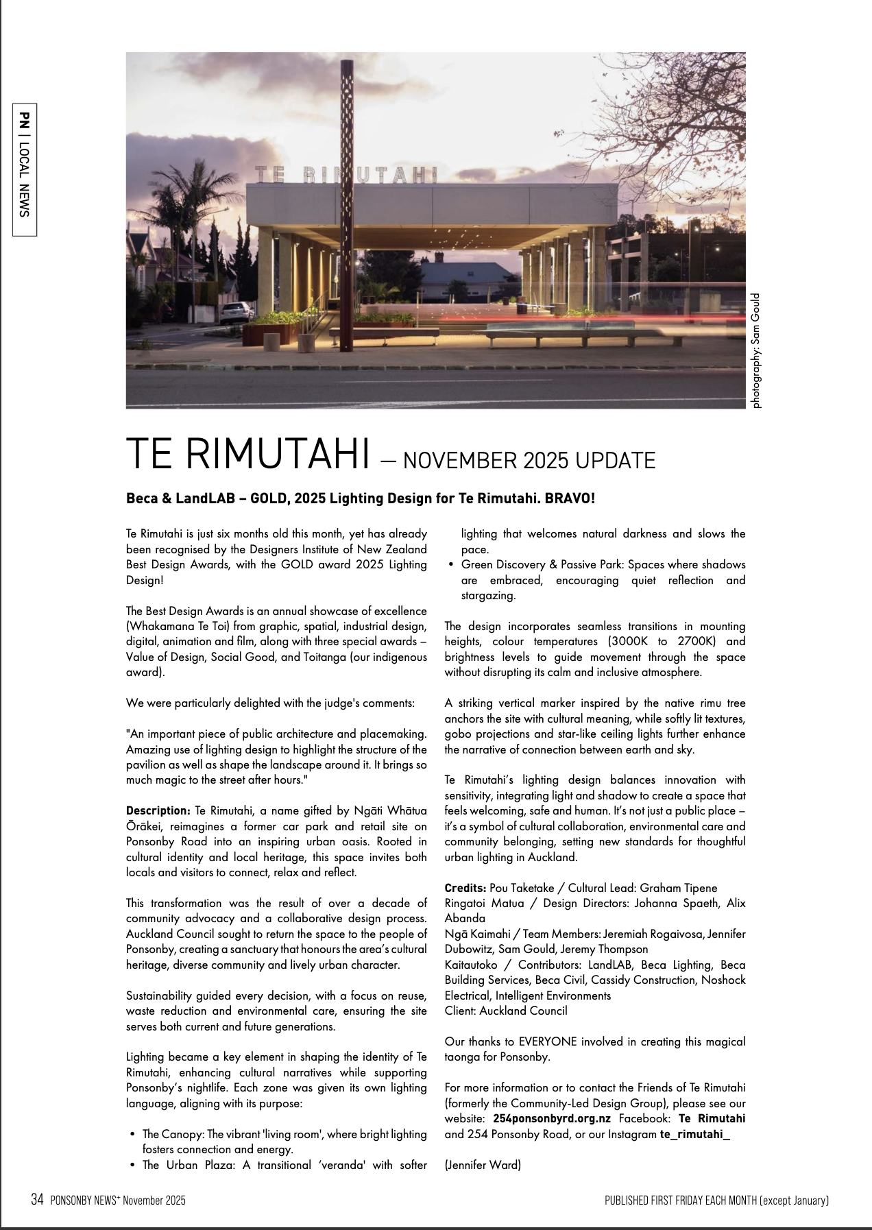 Te Rimutahi is just 6 months old this month, yet has already been recognised by the Designers Institute of New Zealand – Best Design Awards, with the GOLD award 2025 Lighting Design!