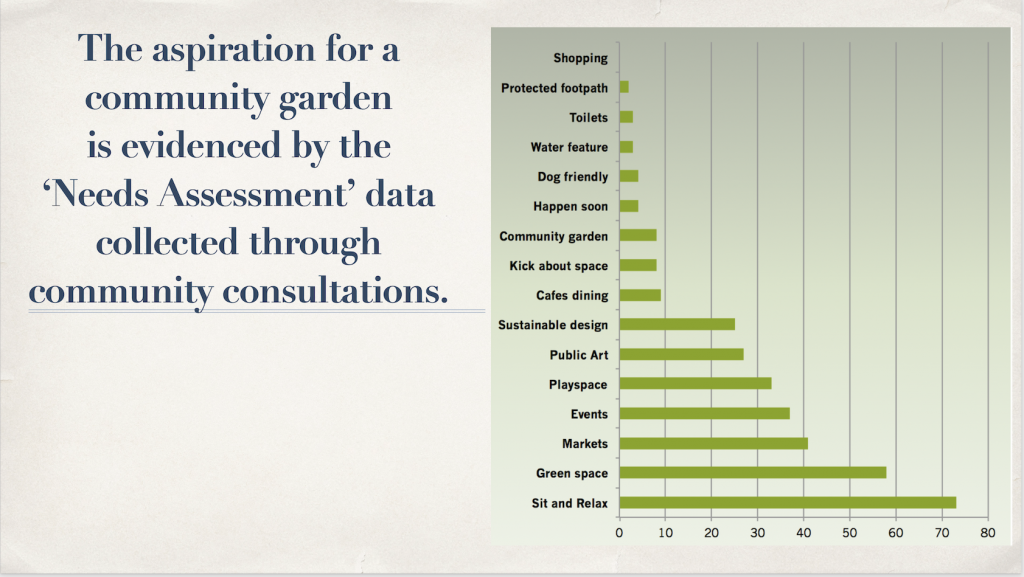 Slide 12 – ‘Community gardens’ have been signaled to the community for months.
