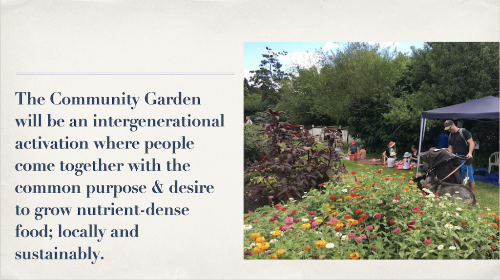 Slide 15 – The community garden will provide and facilitate intergenerational life enhancement.